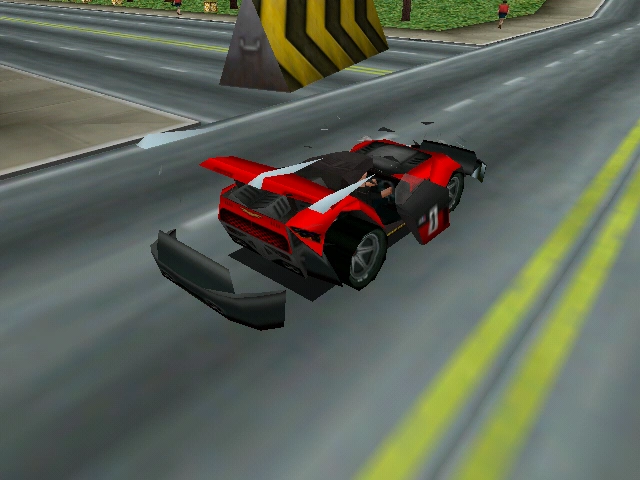 The car suffering crushage due to the bodywork trashed powerup.