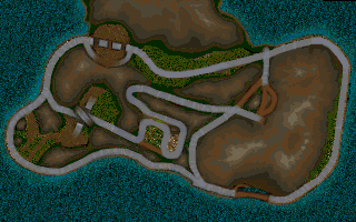 As one of tracks you can play in Reincarnation and Max Damage, Dusty Trails National Park has recieved an improved rework, and now there's a lot more to explore than the original Carmageddon's version. While it keeps the track layout of Map B, this map has more tunnels to go to other areas along with new beach environments inspired from Map A, and there's even a town area in the south based on the city area of Quayside Complex from the original.