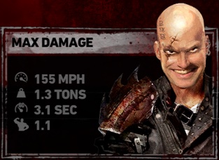 | "Maximum velocity madman Max Damage is back and still on a mission to mangle. He might be part bionic these days but he’s 100% intent on taking apart all opposition." | |