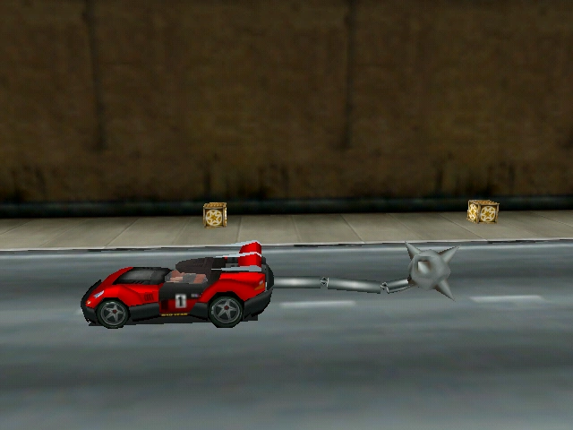 The Mutant Tail Thing, full "name" Wow! A Mutant Tail Thing!, is a powerup that attaches a mutant tail to the car's rear. This tail is solid, and can also cause damage, but because it's at the back of the car, it may be hard to hit with it. It's mostly useful when spinning the car, so that the tail can be swung and have the possibility to hit pedestrians. It can't cause much to damage to opponents. Unfortunately, keeping a tail at the back means that the car's control may be a bit off, because the tail is always scrapping the ground, so most players decided to just cut it off. To do so, they must use the Sever Tail powerup that's automatically earned when this powerup is. The tail can also be cut using the Powerup Cancellificatinizer, and in that case, it'll also delete the Sever Tail powerup from the inventory.