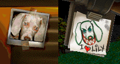 - Pitbull owns a Weimaraner dog named Lily, and loves her very much - there are two photos and one drawing of her in the Towmeister's cabin.